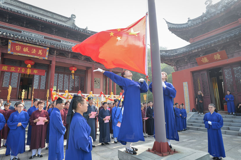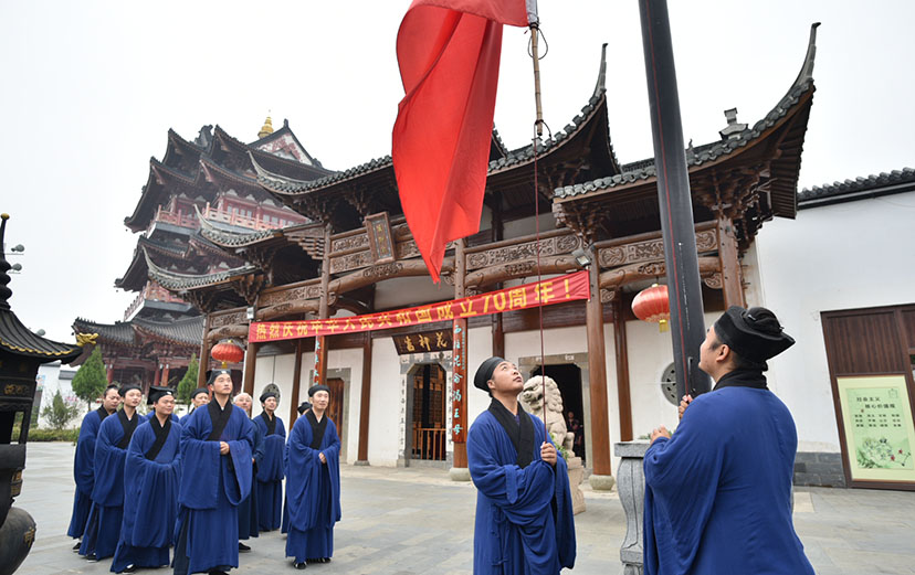 10月1日是中华人民共和国成立70周年,常州白龙观全体教职人员和工作人员在白龙观住持孔新芳...