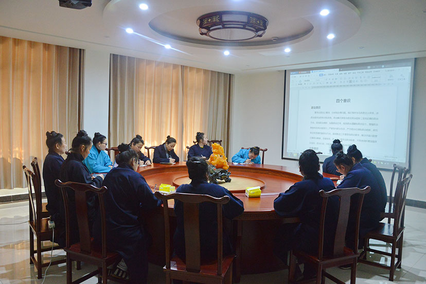 2019年3月24日下午,茅山乾元观住持尹信慧道长带领道众学习全国两会精神,收听收看习近平...