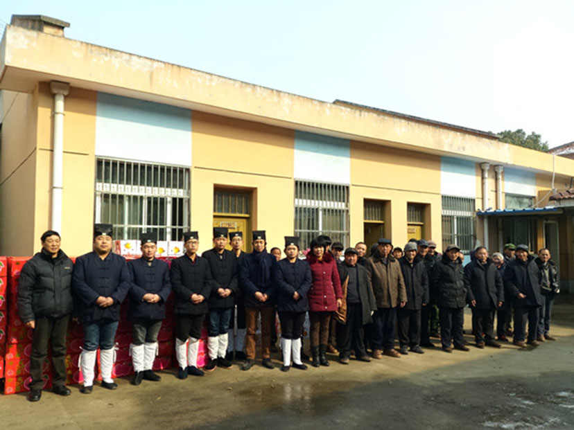 2016年2月2日,茅山元阳观倪建斌道长携7位道长,采购了几百箱苹果、梨子与饼干,来到薛埠敬老院慰问一百多位...