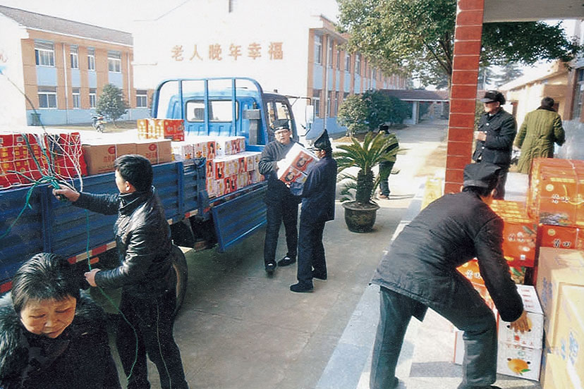 金坛市茅山元阳观全体教职人员于2013年1月28日,顶着浓浓的雾霾,驱车前往金坛市薛埠镇、西...